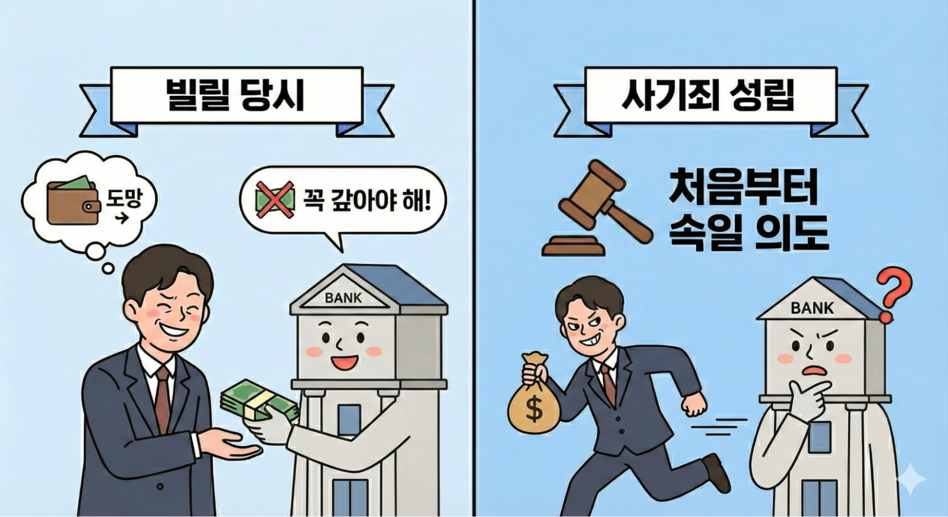 즉, 채권자가 말하는 “돈 못 갚으면 사기다”라는 표현은 실제 법리와는 거리가 있는 경우가 많습니다.