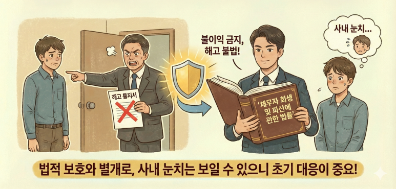 혹시 이미 급여 압류가 진행되어 회사가 개인회생 사실을 알게 되었다면, 너무 불안해하실 필요는 없습니다. 법적으로는 회생절차를 이유로 불이익을 주는 것이 금지되어 있습니다. 채무가 있다는 이유만으로 해고하거나 징계하는 것은 명백한 부당행위에 해당합니다.