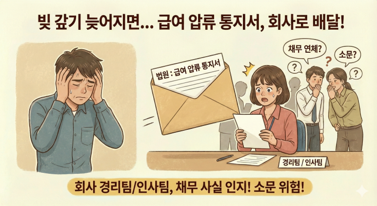 회사에 알려지는 유일한 경로는 ‘급여 압류’입니다. 연체가 장기화되면 카드사나 은행 같은 채권자는 법적 조치를 취하게 되고, 그중 가장 강력한 수단이 급여 압류입니다.